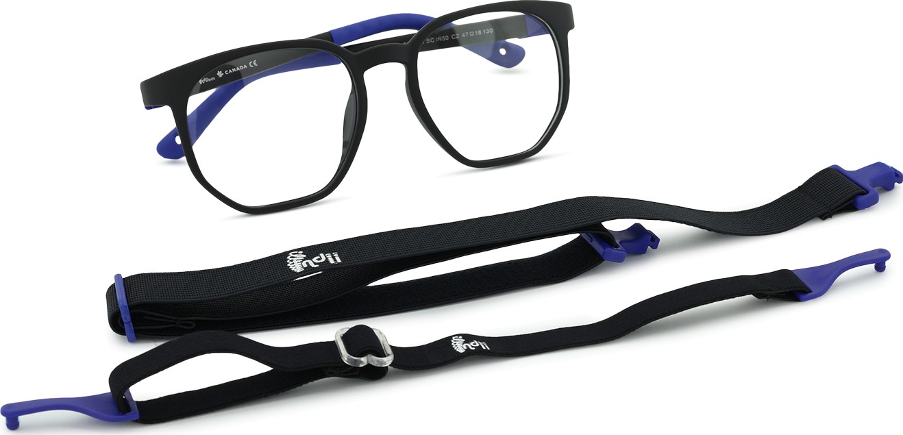 Le modèle Indii Kids IN est doté de deux sangles en tissu réglables qui permettent d'éliminer le risque de perte des lunettes et d'assurer une meilleure fixation sur la tête lors des différentes activités des enfants.