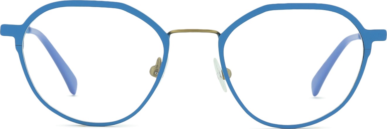 • La couleur bleue de la monture s'accorde parfaitement avec tous les teints et des cheveux châtain clair, noirs ou blonds clairs.