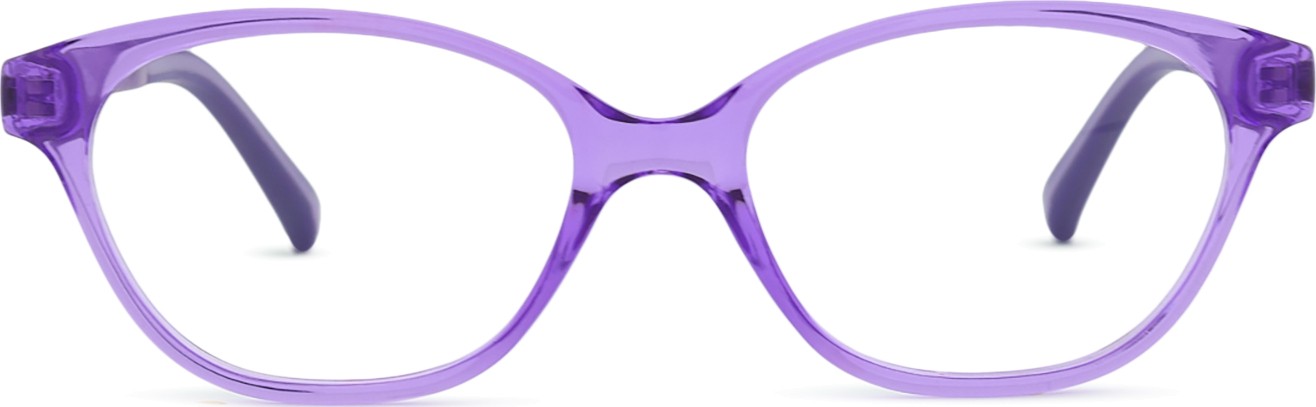 De paarse kleur van het montuur past perfect bij een koele huidskleur en zwart,