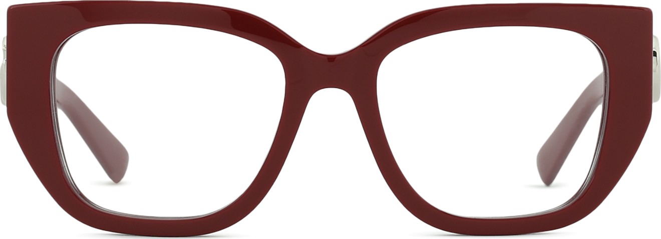 De rode kleur van het montuur past perfect bij een warme huidskleur en zwart,